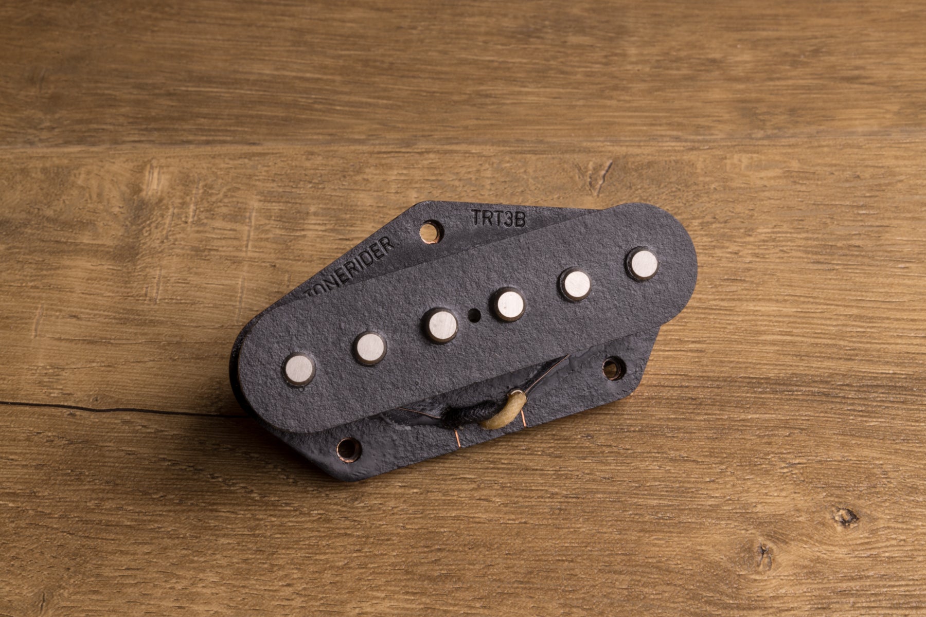 The Alnico rod pole pieces on the bridge pickup incorporate Tonerider's modified stagger, with a higher third and fourth string polepieces to optimise string-string balance.