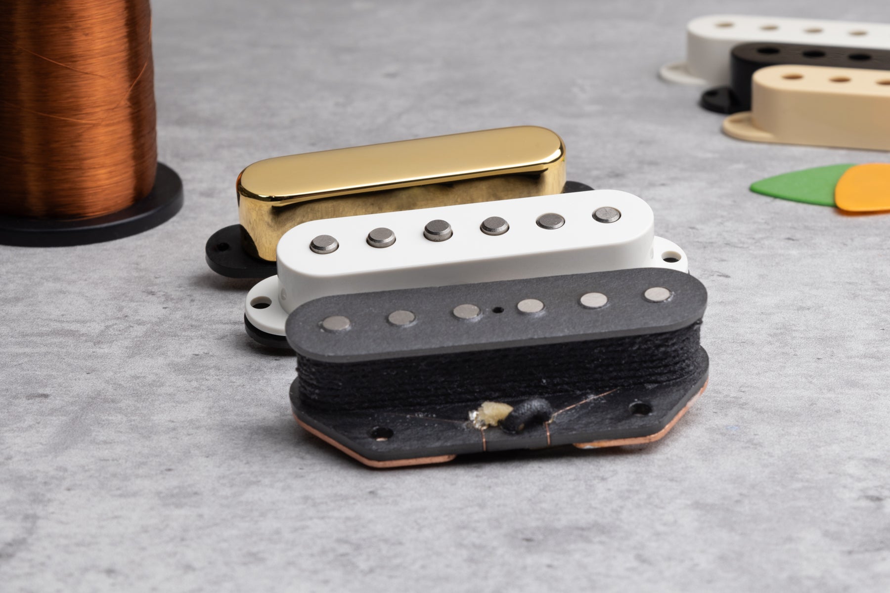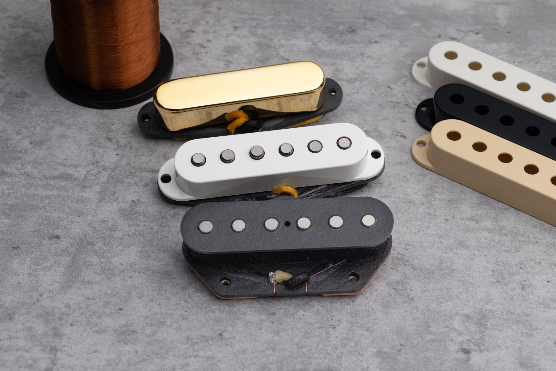Reverse wound, reverse polarity is standard on all sets – so you get full humcancelling operation in positions 2 and 4. All screws and latex springs are provided.